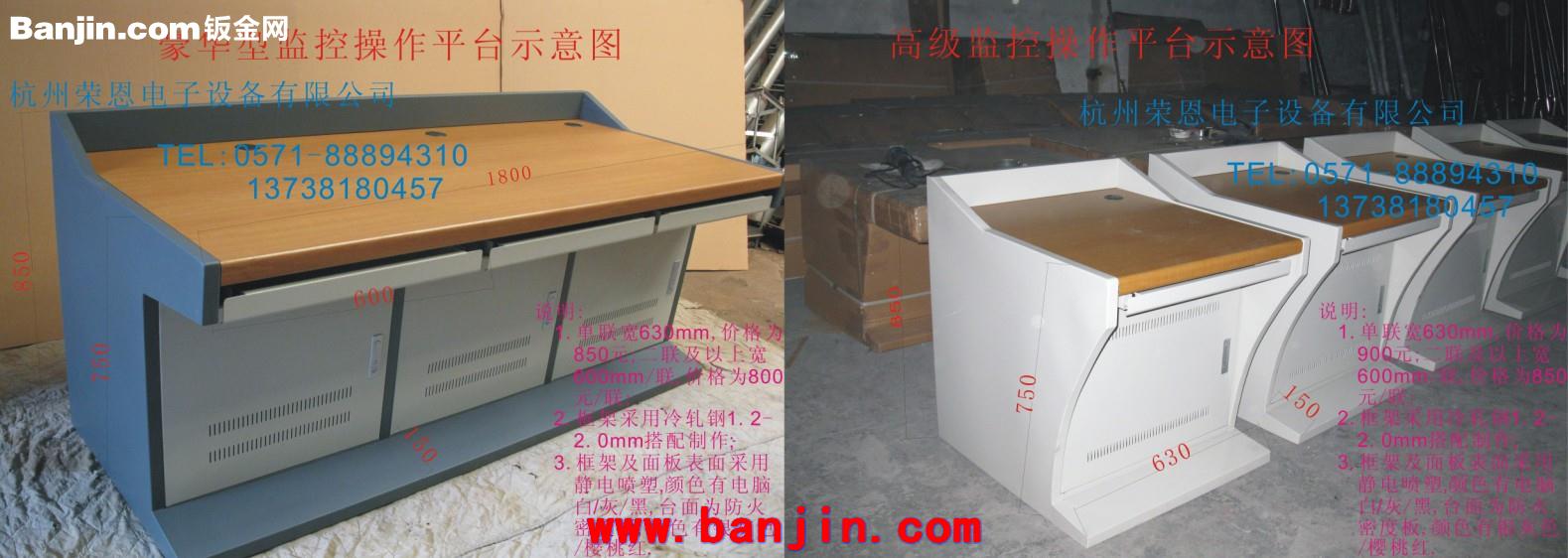 杭州荣恩电子设备有限公司是一家专业生产操作台,监控立杆,屏幕墙,网络机柜,室外防水箱的厂家,座落在浙江省杭州市江干区笕桥镇俞章村一组工业园区4幢,欢迎新老客户前来参观考察!杭州荣恩控制台单联、双联、三联、四联、多联体控制台按人机最佳配合尺寸设计,符合人体工程学理论要求。具有结构合理、工艺先进、色彩协调、安装方便等特点。可以单独使用亦可多台连用,满足多种组合需要。工作台面的长度可以根据用户的要求进行设计。适用于广播电视、闭路监控、指挥中心等多种行业。